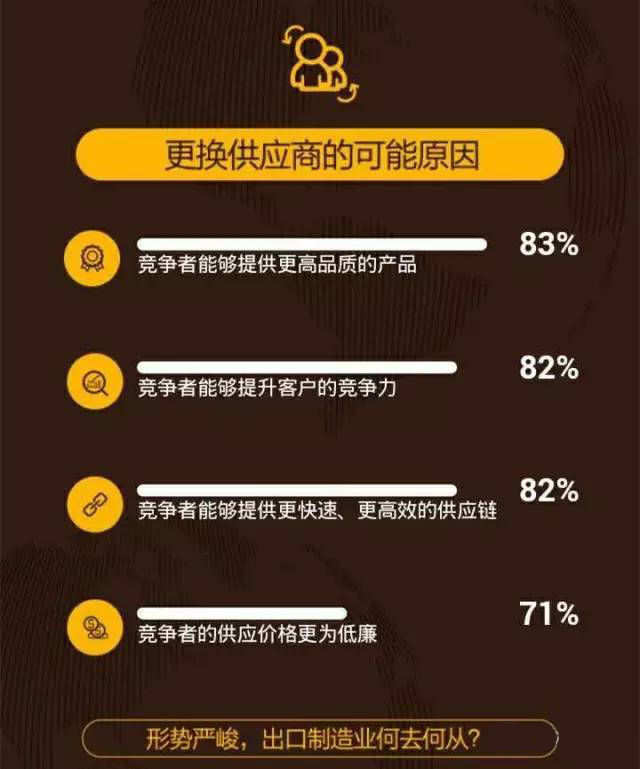 出口制造企業(yè)面臨的競爭必然會加劇,80% 的出口制造企業(yè)預計2016年的競爭將會更加激烈,這與過去五年來競爭與日俱增的趨勢相一致。