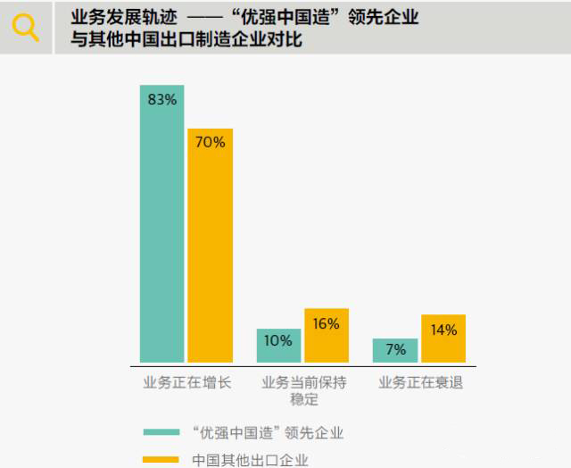 就生產效率、市場份額、收入水平和盈利情況這四項指標而言,“優(yōu)強中國造”領先企業(yè)在調研進行時表示過去 12 個月有所改善的可能性也更大。