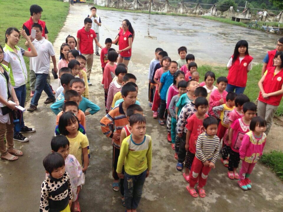 出發(fā)的前一秒依然下著磅礴大雨,但始終阻擋不了愛的力量。給力的伙伴們風雨無阻的一一到來,強悍的臂膀在風雨交加中光著小腳丫來回奔跑地搬運物資,美麗的倩影高高舉著雨傘默默的陪伴著雨中奔跑的人兒……這一幕幕的出現(xiàn),只因一個偉大而強大的字:愛!第二天經(jīng)過山路十八彎后來到了鎢蓮小學(xué),遠遠的就看到了可愛的孩子們站在校園兩旁歡迎我們的到來。頓時讓我們百感交集,走到他們中間,看到他們陌生而好奇的眼神,只想走向他們,抹去那份陌生,讓我們親近親近再親近些。