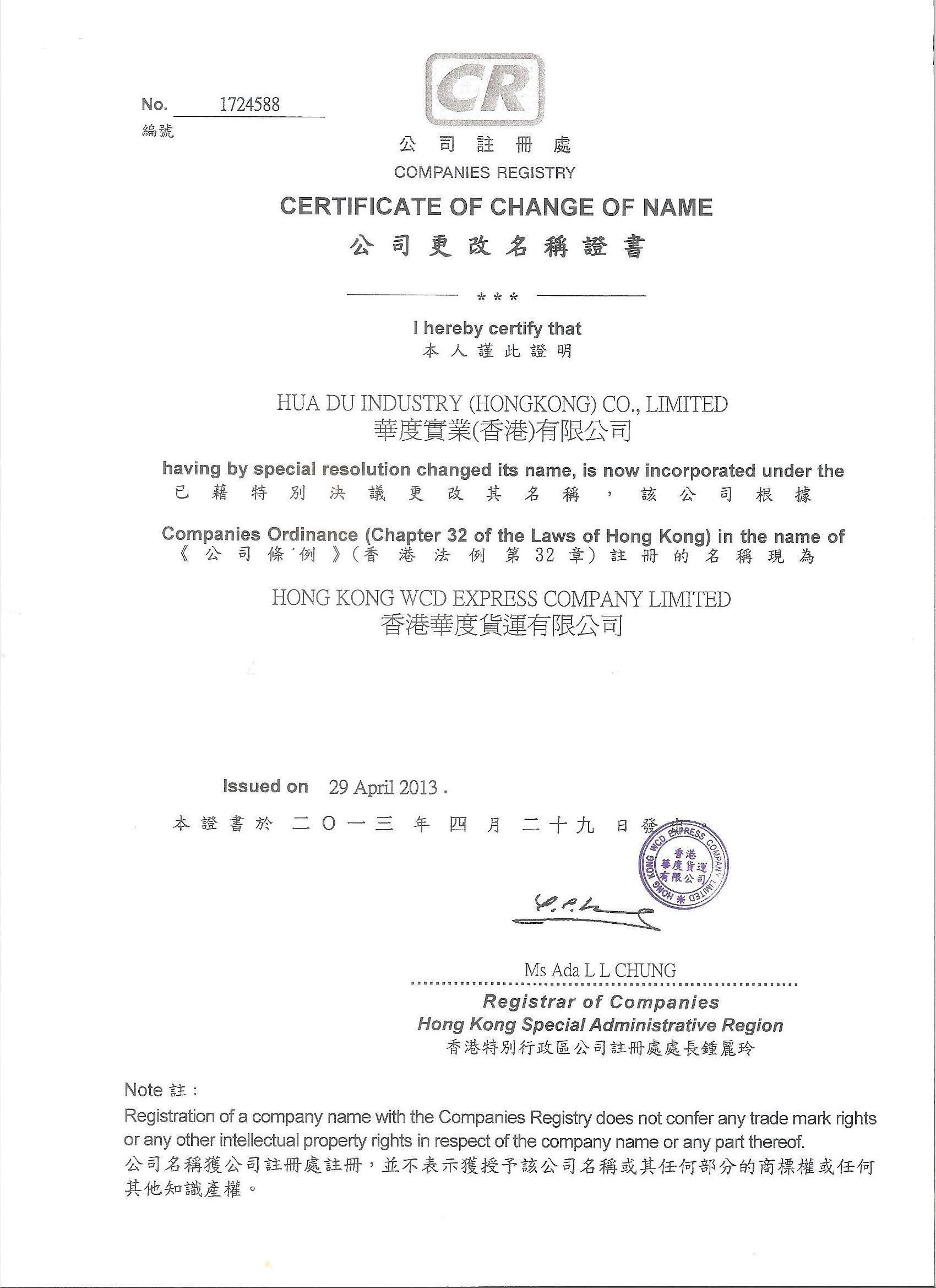 香港華度貨運(yùn)有限公司成立于2012年4月7日