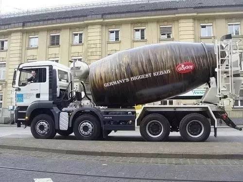 這應(yīng)該德國某個叫“doydou”的餐廳的廣告,車身上寫著是"GEEMANY'S BIGGEST KEBAB"翻譯為“德國最大的KEBAB”。