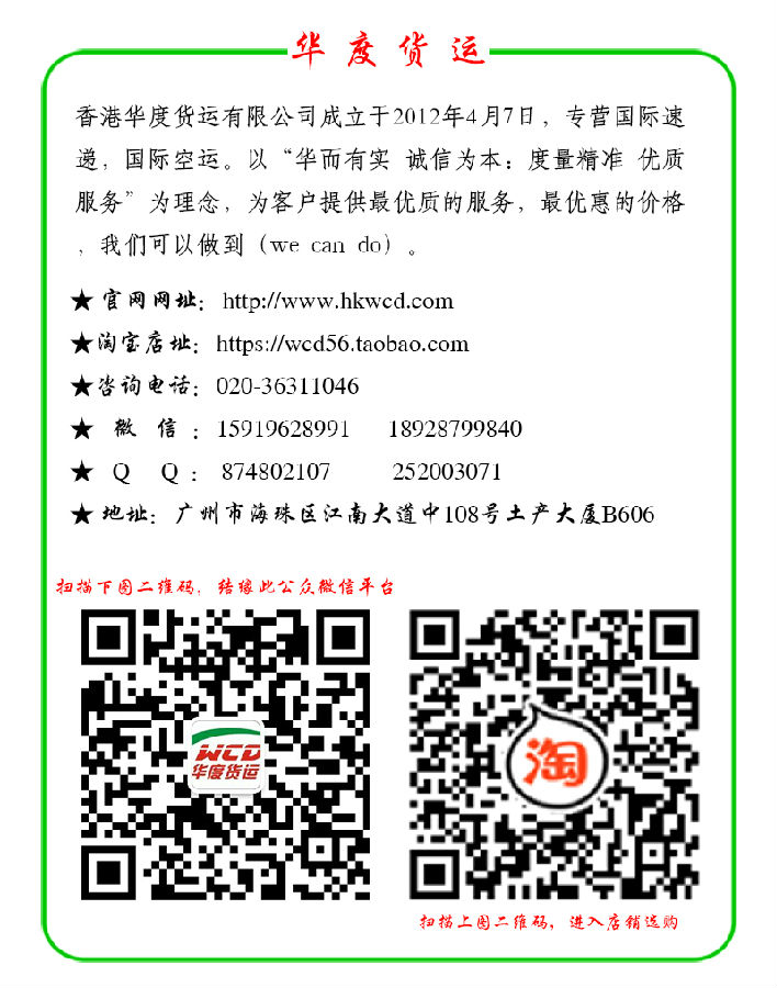 隨著跨境電商井噴式發(fā)展,以及相關(guān)政策紅利的不斷釋放,2016年,跨境電商將迎來更關(guān)鍵的快速發(fā)展期,為了滿足更多客戶的需求。華度貨運(yùn)不敢怠慢,特別推出2KG以內(nèi)特惠價(jià)格,歡迎咨詢!再一次擔(dān)當(dāng)起為您的事業(yè)保駕護(hù)航責(zé)任,提供方便,省心的服務(wù)。歡迎您的咨詢。