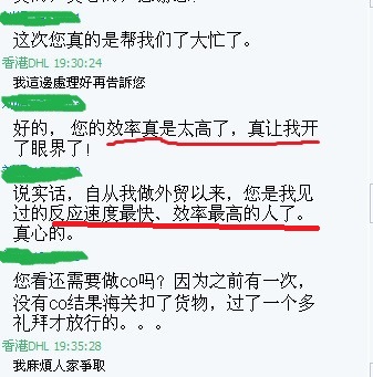 我毅然決定,立馬坐車去深圳收貨,19:25 廣州和諧號(hào)至深圳,在羅湖香格里拉酒店領(lǐng)取這4件衣服,趕上深圳回廣州的最后一班車,到廣州倉庫立刻安排打包,確認(rèn)訂單,每一分鐘都是那么珍貴,在22:54操作完成,順利在23:00上港車,順利報(bào)關(guān)清關(guān),29號(hào)順利簽收了包裹,2天就到法國(guó)的快遞,這對(duì)客戶來說,簡(jiǎn)直就是個(gè)振奮人心的消息。